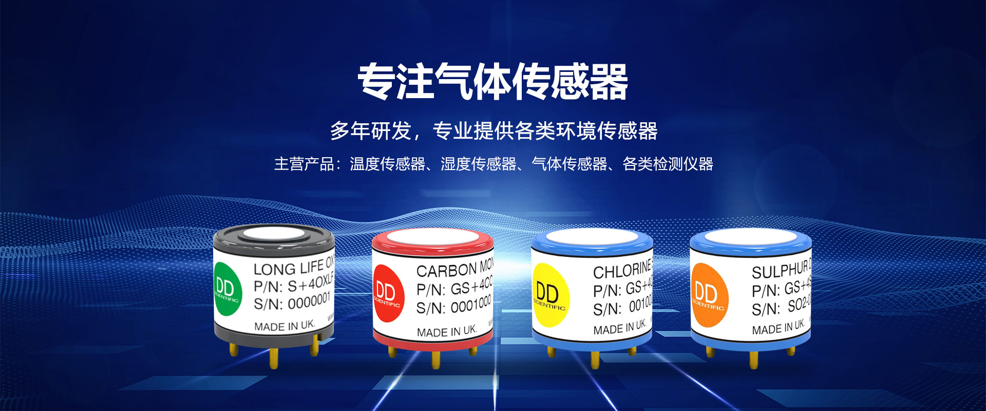 产品应用领域:电力电子、石油化工、汽车、家用电器、现代化农业等行业。产品系列有:氧气(O2)、一氧化碳(CO)硫化氢(H2S)、氨气(NH3)、双气(CO/H2S)、二氧化氮(NO2)、一氧化氮(NO)、氯气(CL2)、环氧乙烷(ETO)、二氧化硫(SO2)、臭氧(03)、氢气(H2)。